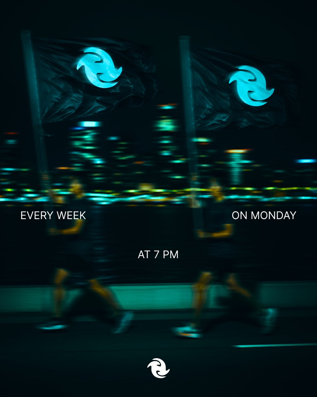 The concept explores the idea that running is not just an individual act, but a shared experience; a space where movement brings people together. The symbol reflects this through a continuous, circular motion: a dynamic form that suggests flow, momentum, and unity. The typography is bold and grounded, creating a strong visual presence while remaining approachable and inclusive; just like the community it represents.