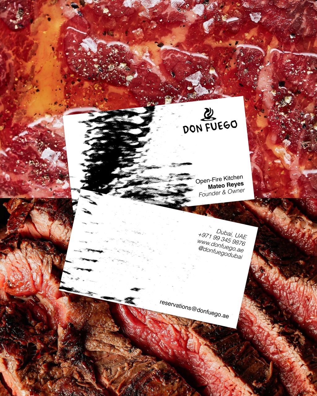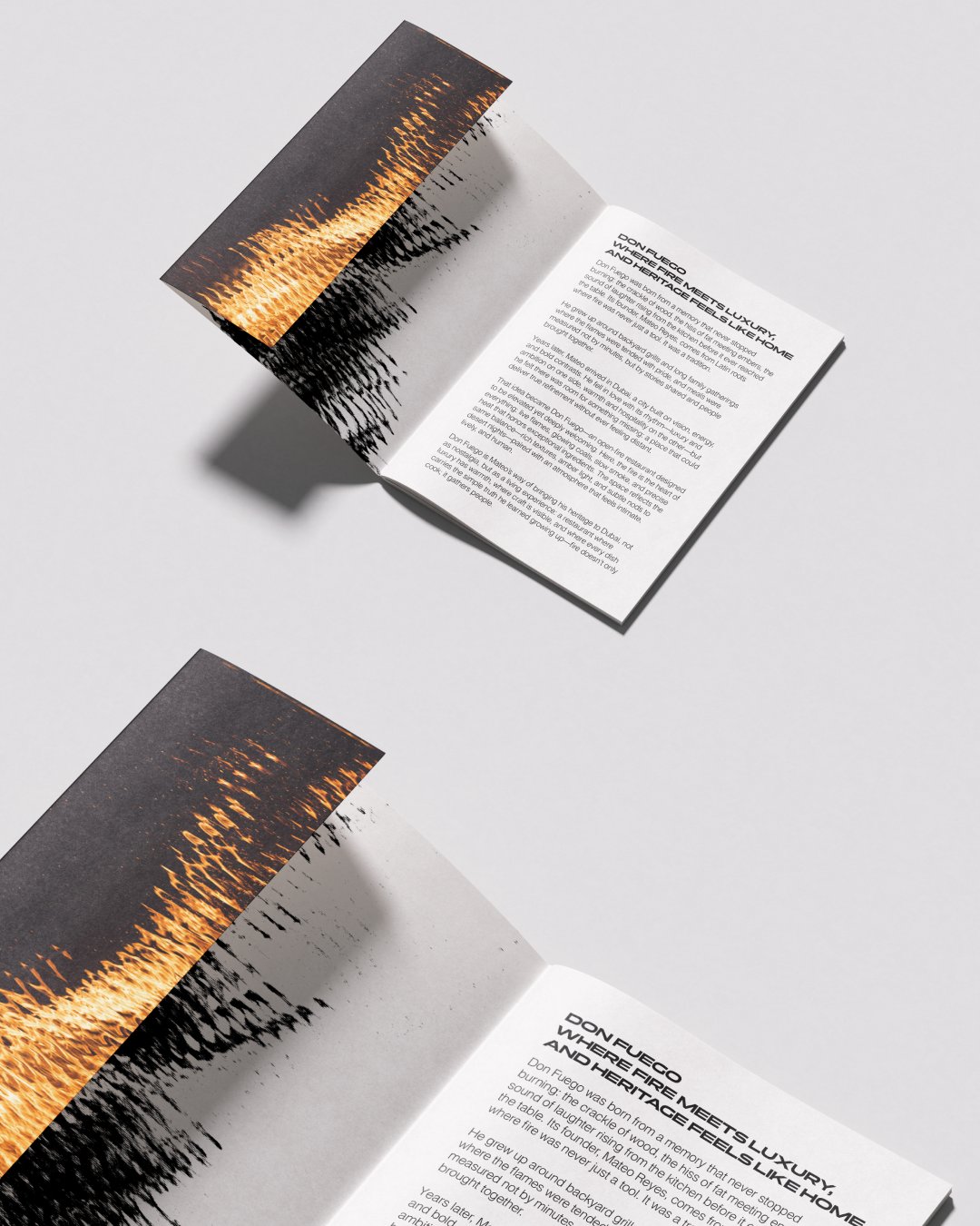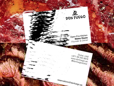 For this brand identity, I wanted to capture the raw, visceral essence of open-fire cooking: the crackle, the smoke, the imperfect beauty of charred surfaces.